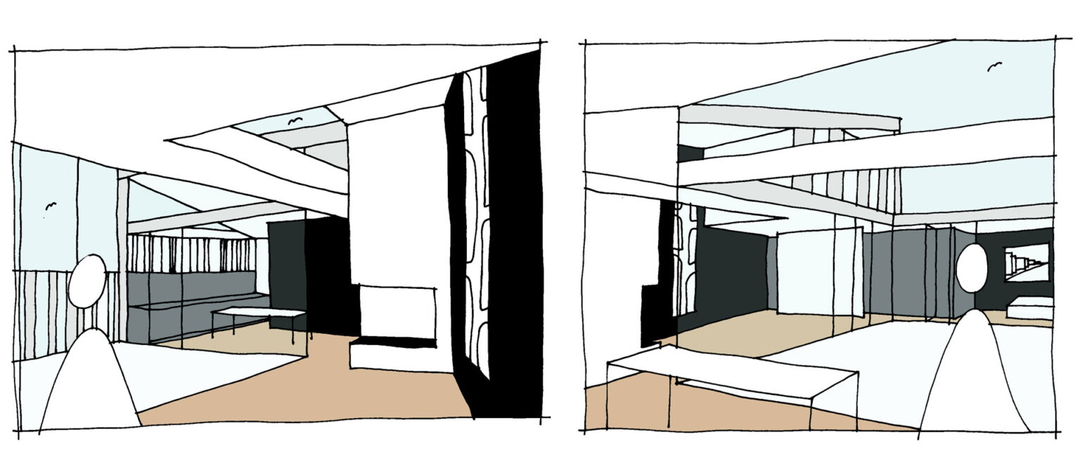 Zo heeft het huis veel verschillende plekken en elementen die samen een spannend ruimtelijk aaneengeschakeld geheel vormen.