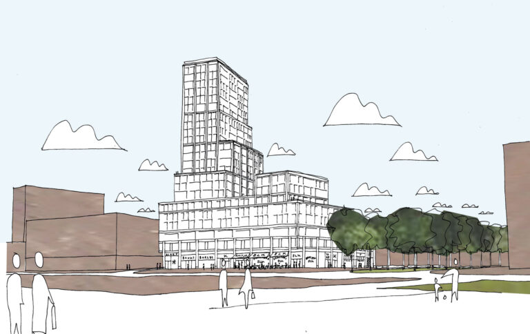 Hierna is in het schetsontwerp het gebouwmodel nader uitgewerkt. De draagconstructie werd onderzocht, waarbij voor de toren een betonnen kolommenstructuur en voor de kantoren in de laagbouw een houten draagconstructie werd gekozen. De layout van de parkeergarage werd nader ontworpen. De typologie van kantoren van de laagbouw en de toren werden bepaald, waarbij beide vanuit het atrium worden ontsloten. Ook de mogelijke woningplattegronden zijn nader uitgewerkt. Tenslotte is het atrium als centrale ruimte verder ontworpen en verbeeld.