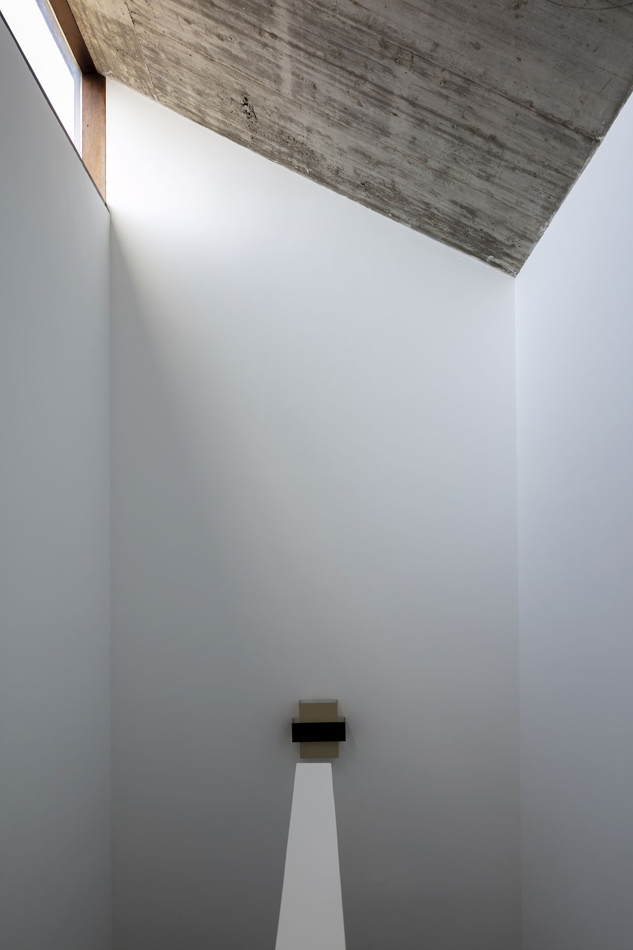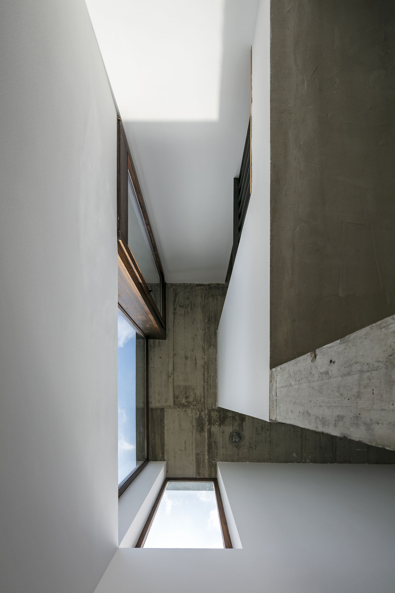 Het huis heeft open en besloten plekken en een verrassende ruimtelijkheid. De gebruikte materialen zijn eerlijk: de kozijnen zijn van hout, de gevels zijn bekleed met de gele steen die bij het uitgraven van de locatie gewonnen is. De betonnen vloeren en plafonds zijn in het zicht gelaten.