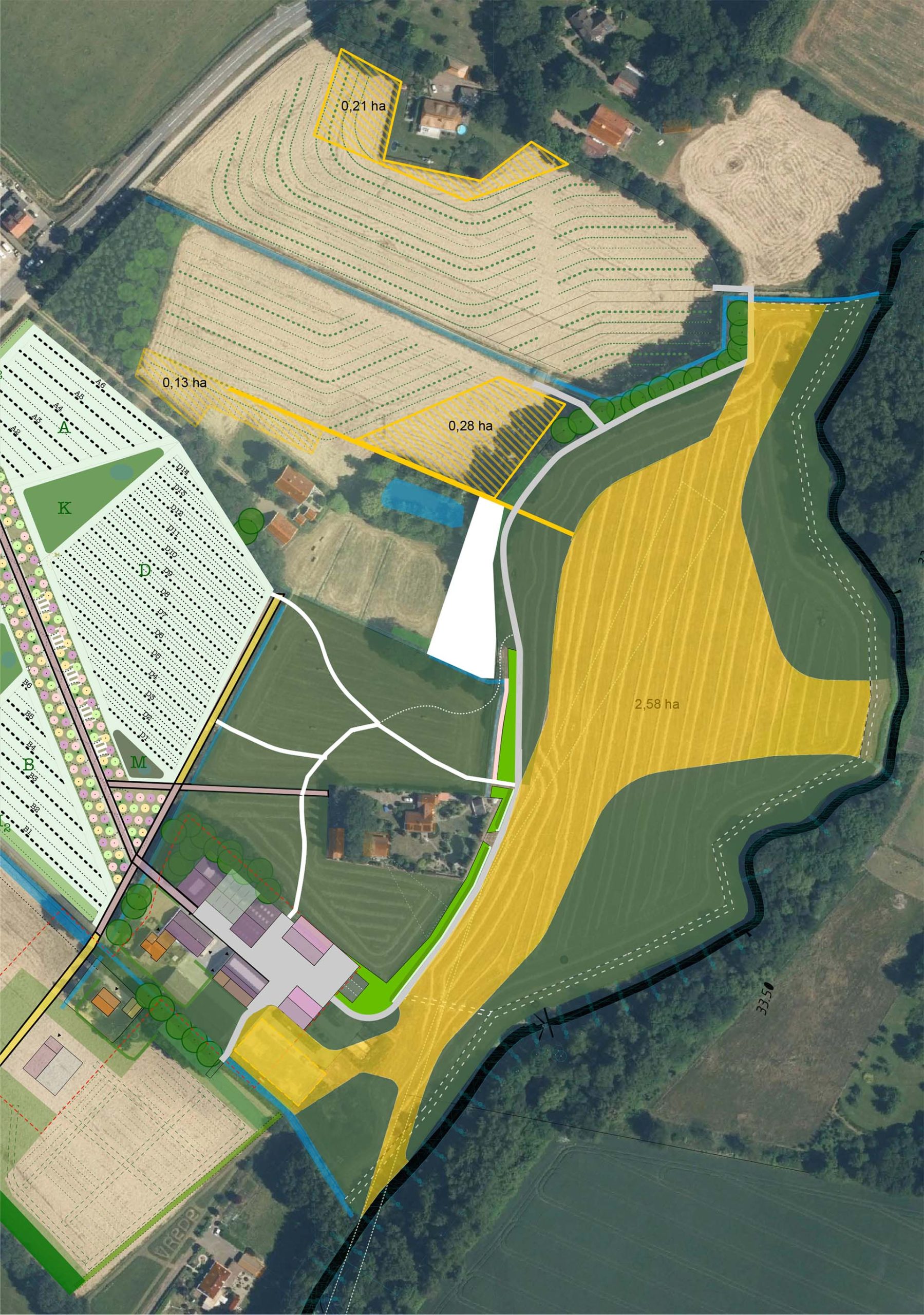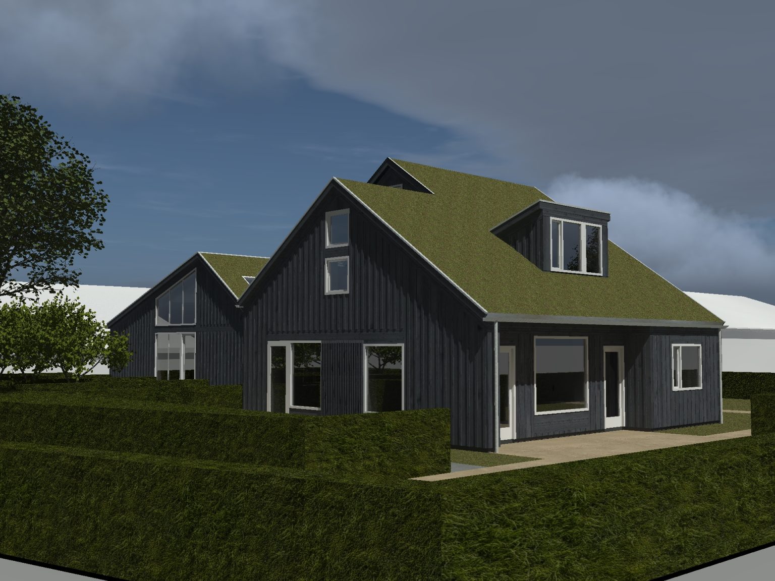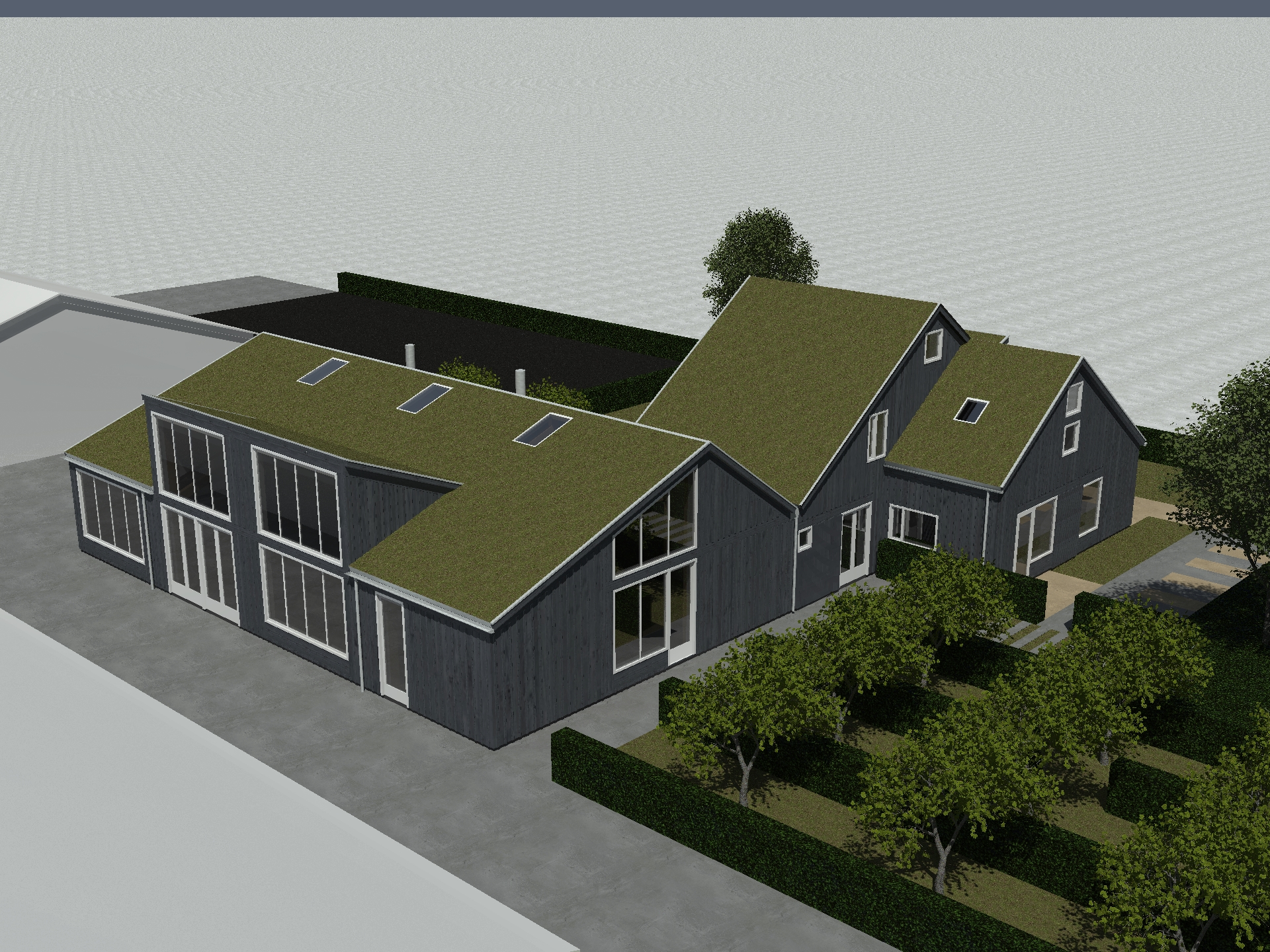 Het ontwerp voor een verbouwing en verduurzaming van een woonhuis en de bouw van een hoogwaardige bedrijfsruimte is onderdeel van een grotere ontwikkeling, waarbij een oude veehouderij getransformeerd wordt tot voedselbosboerderij. De initiatiefnemer is een enthousiast gezin wat met veel energie én geduld een voedselbos aan het aanplanten is op de oude weiden.