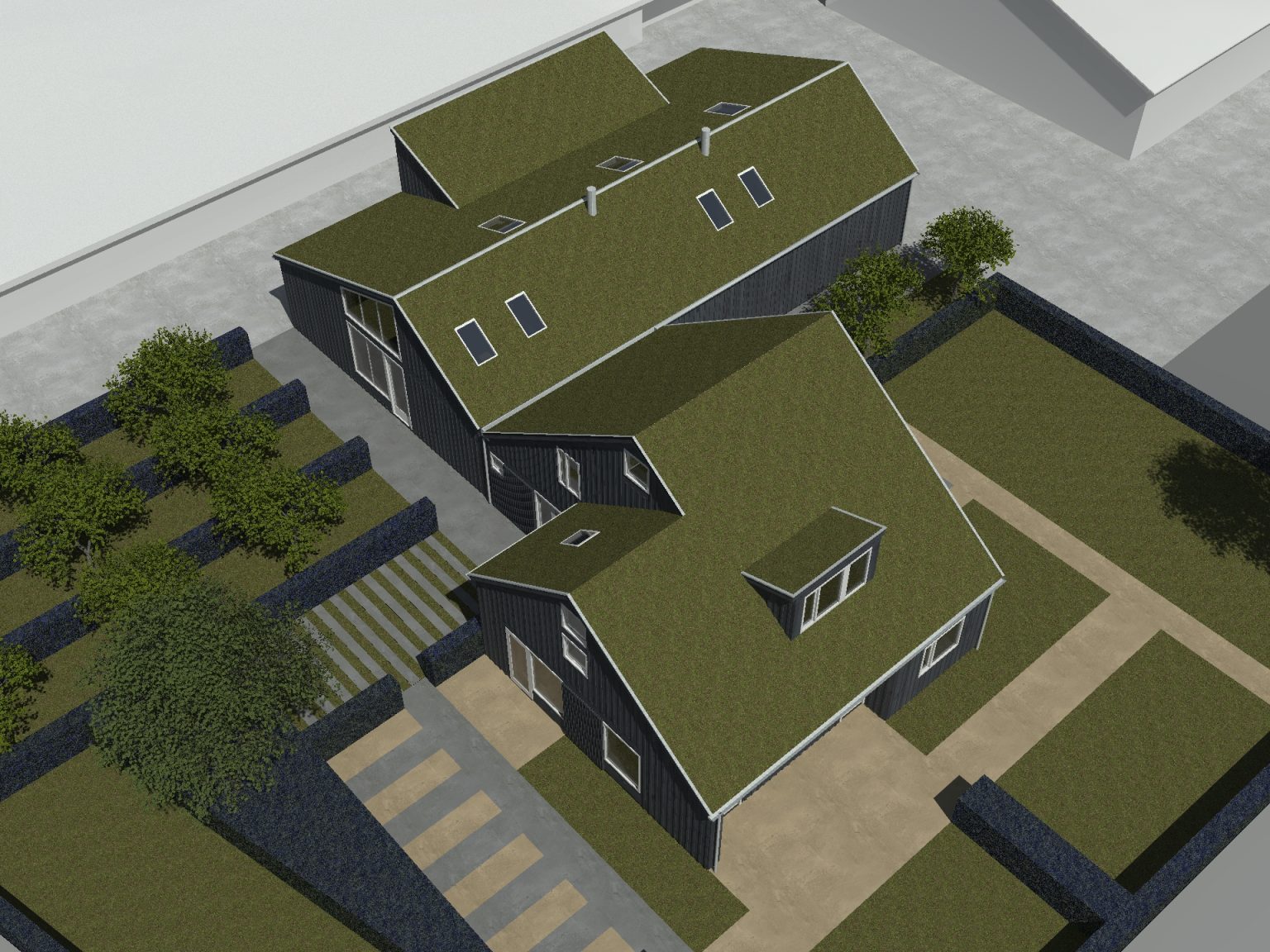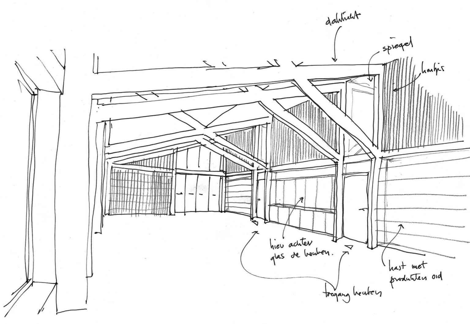Het geheel is in een nauwe samenwerking met de initiatiefnemer ontworpen. In het ontwerp voor het woonhuis wordt het bestaande huis geheel gestript, verduurzaamd en uitgebreid. Naast het woonhuis komt een hoogwaardige lichte bedrijfsruimte met een ruimtelijke en speelse houten constructie van samengestelde spanten. De buitenwanden van de uitbreiding van het woonhuis en de bedrijfsruimte worden gebouwd met houtskeletbouw. De gevelbekleding bestaat uit opdekwerk van verduurzaamde en langzaam vergrijzende eiken planken. De te gebruiken materialen zijn zo veel mogelijk biobased en circulair.