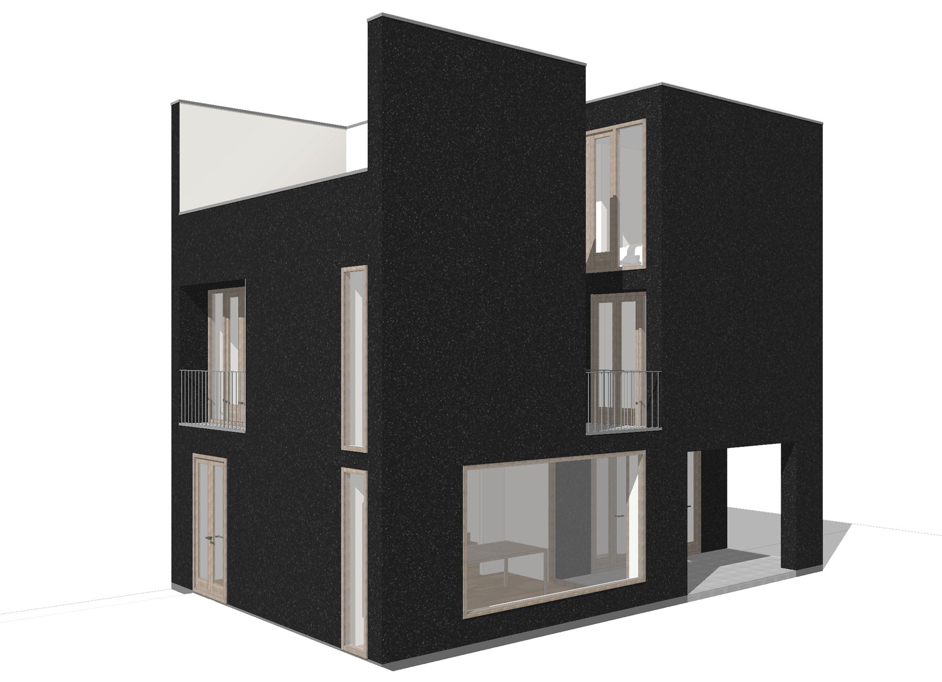 De prijsvraag vroeg om een goedkoop huis op een nader te bepalen plek in Almere. Het experimentele huis is ontworpen als een introvert huis zonder context. Het verschijnt als een gesloten zwarte monoliet met gesuggereerde zware muren, nissen en slechts enkele openingen. De ruimtelijkheid en de oriëntatie op de zon is tegelijkertijd echter optimaal.