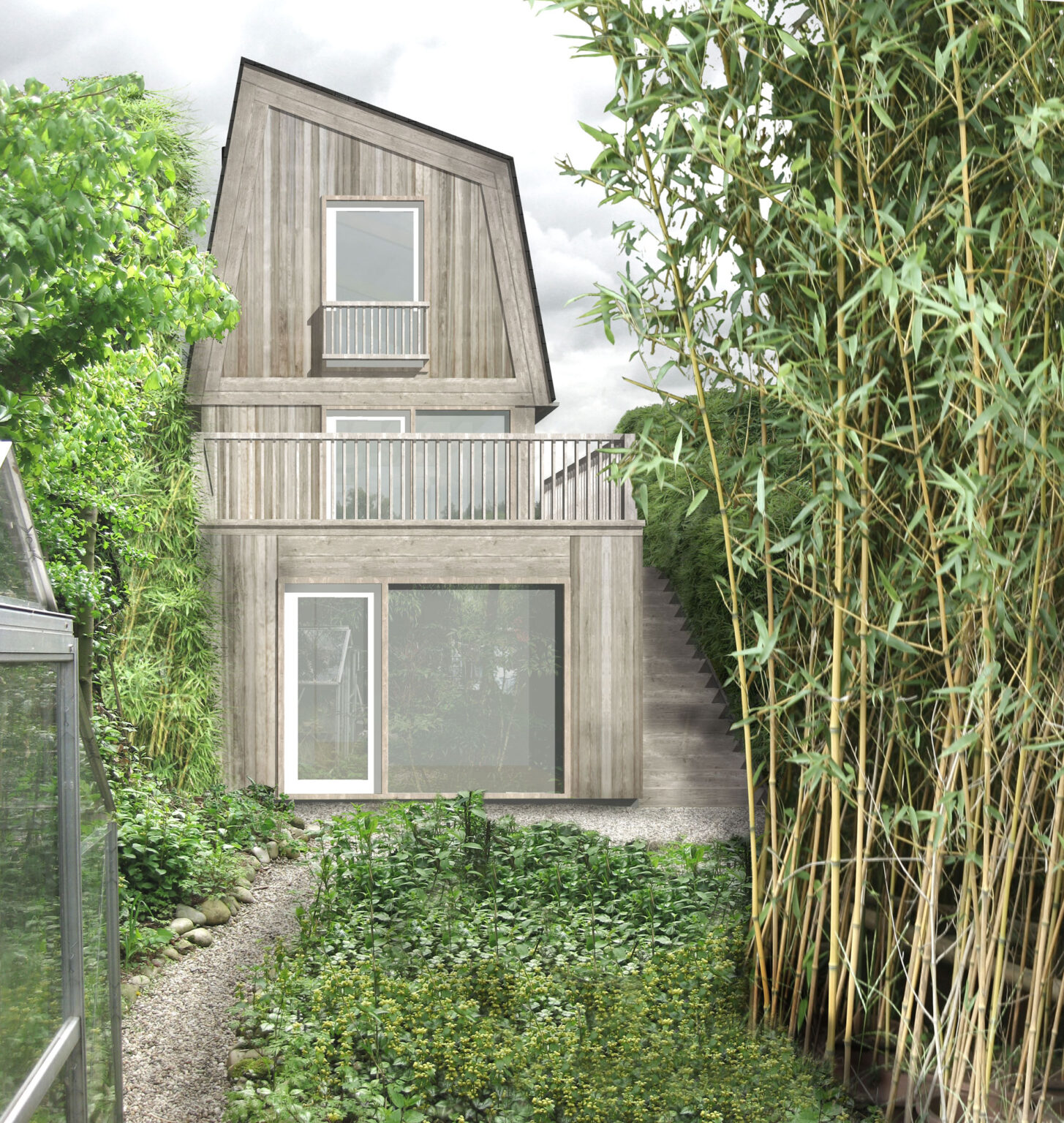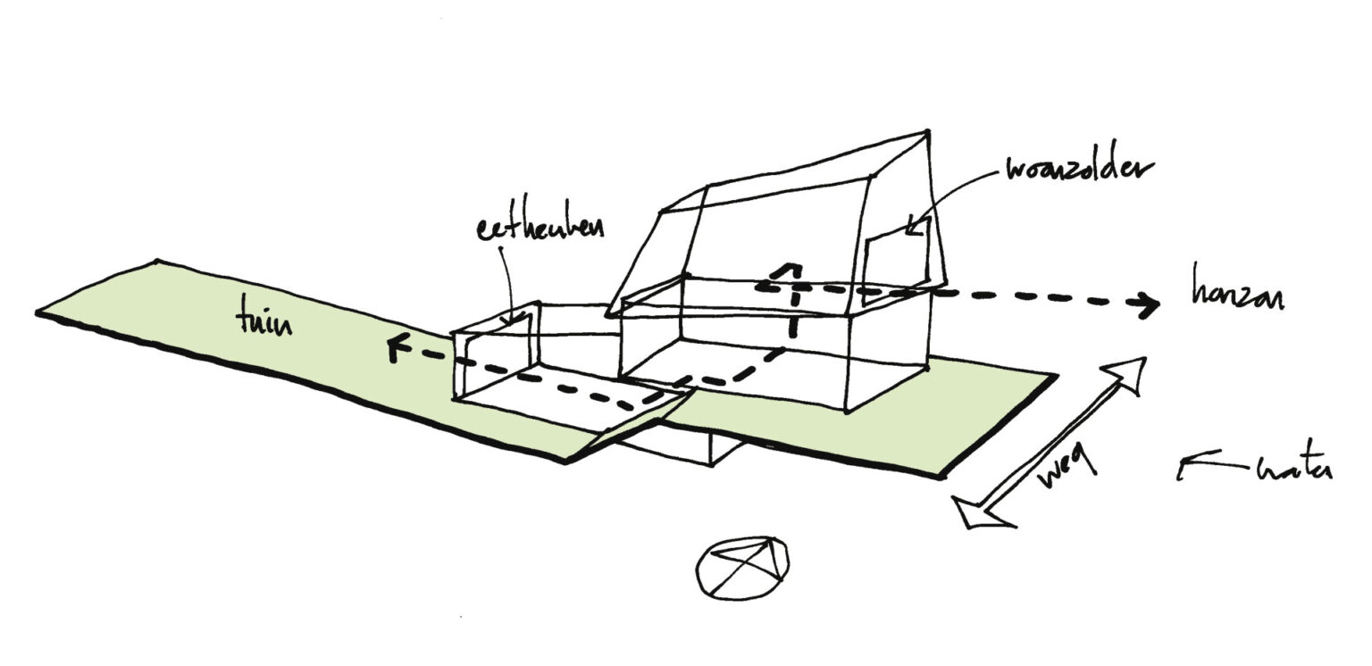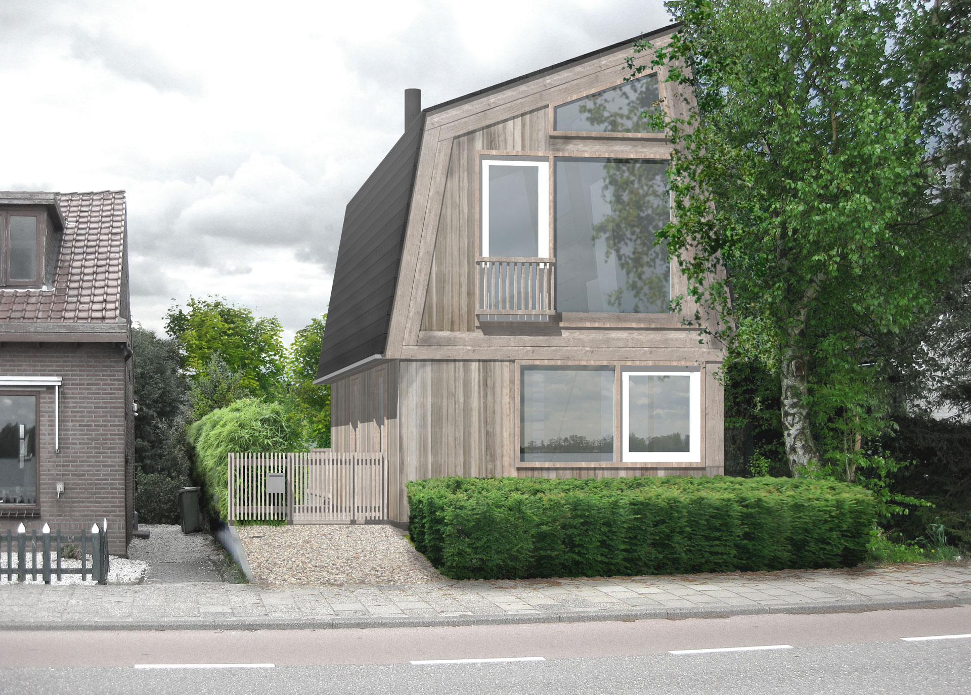 Het bestaande woonhuis op een smalle, maar diepe kavel aan de Ringvaart van de Haarlemmermeer wordt vervangen door nieuwbouw in hout. De woonkamer op de 1e verdieping bevindt zich onder een grote kap en heeft zicht op de horizon over de Westeinderplassen. Het souterrain met slaapkamer is georiënteerd op de besloten tuin. De woonkeuken op de begane grond is het hart van het huis. Het relatief kleine huis is slim ontworpen om veel verschillende plekken in het huis te creëeren en met een optimale oriëntatie op de omgeving.
