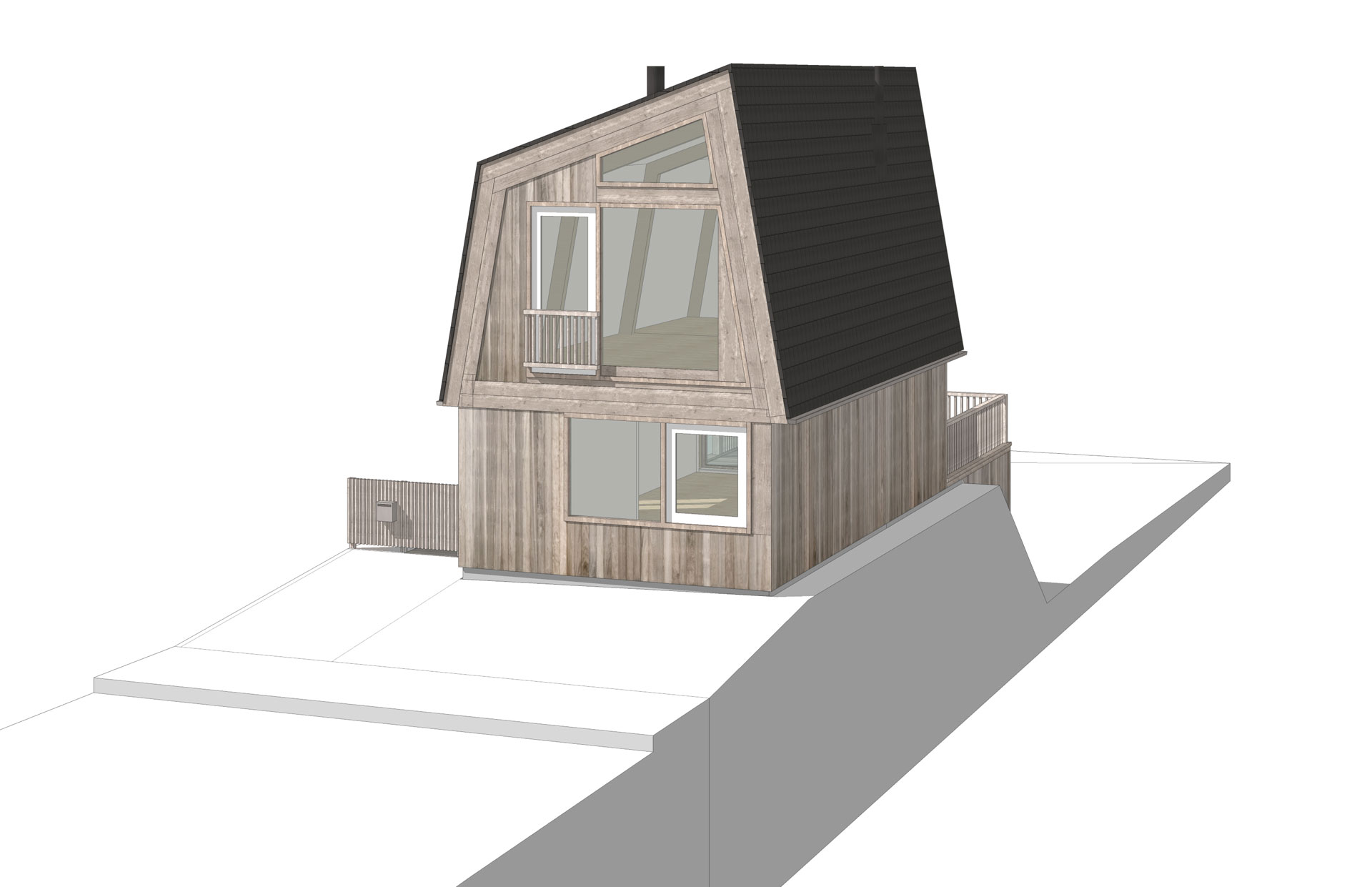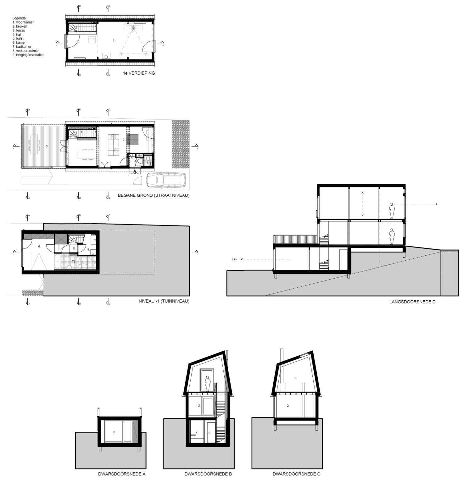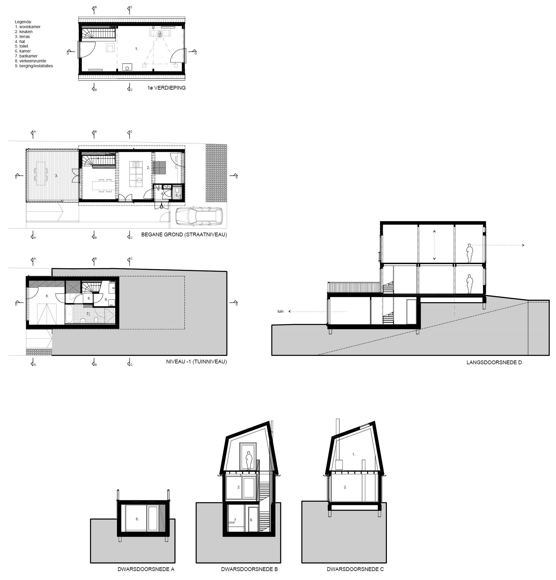 Het bestaande woonhuis op een smalle, maar diepe kavel aan de Ringvaart van de Haarlemmermeer wordt vervangen door nieuwbouw in hout. De woonkamer op de 1e verdieping bevindt zich onder een grote kap en heeft zicht op de horizon over de Westeinderplassen. Het souterrain met slaapkamer is georiënteerd op de besloten tuin. De woonkeuken op de begane grond is het hart van het huis. Het relatief kleine huis is slim ontworpen om veel verschillende plekken in het huis te creëeren en met een optimale oriëntatie op de omgeving.